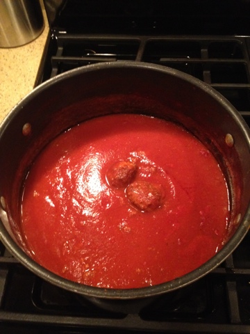 First the meatballs (and sausage which I omitted today):